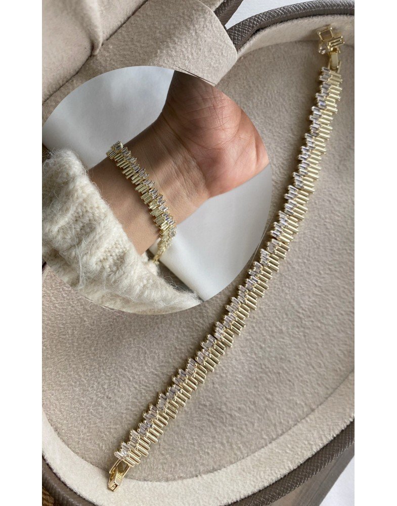 14k özel seri baget taşlı çift geçişli altın model juping bileklik