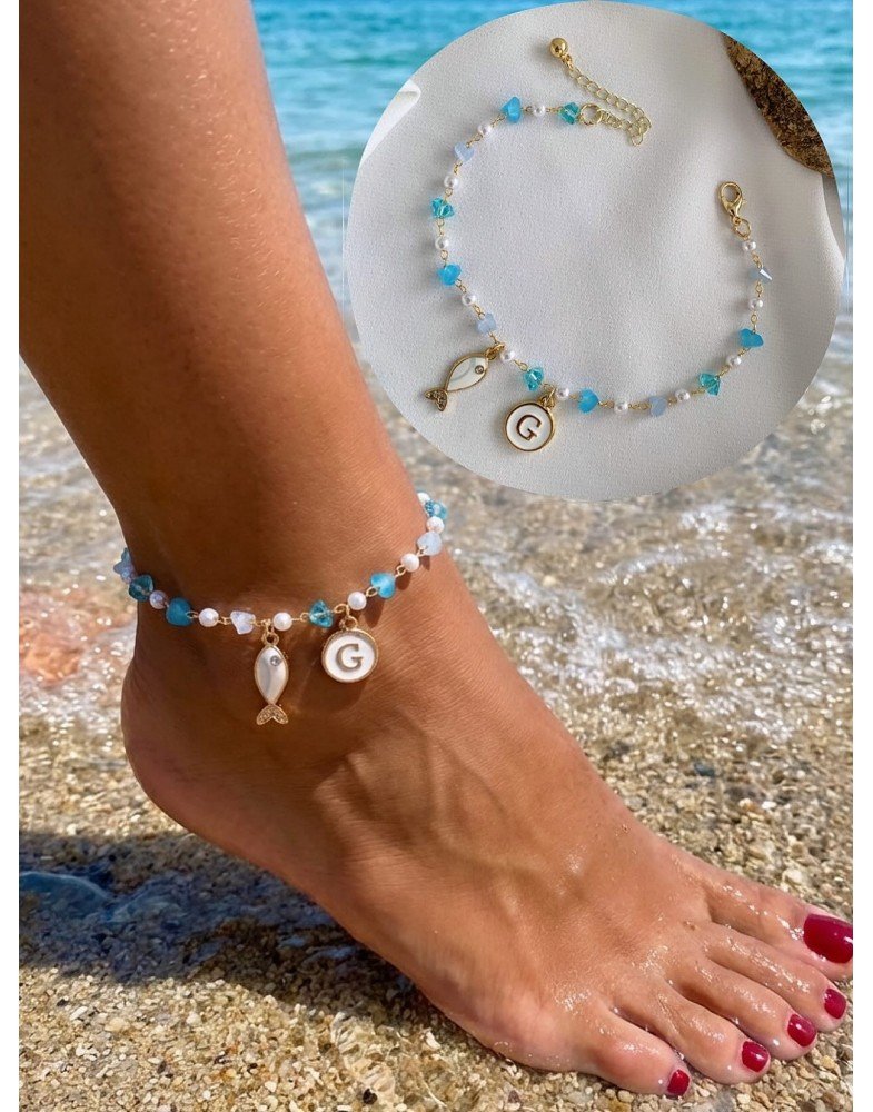 akuamarin taşı beyaz balık harfli halhal