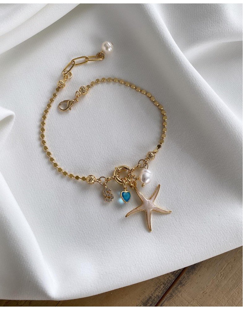 sedefli deniz yıldızı charm özel tasarım gemici kilit petek zincir orjinal tatlı su incisi sarkaç harfli halhal