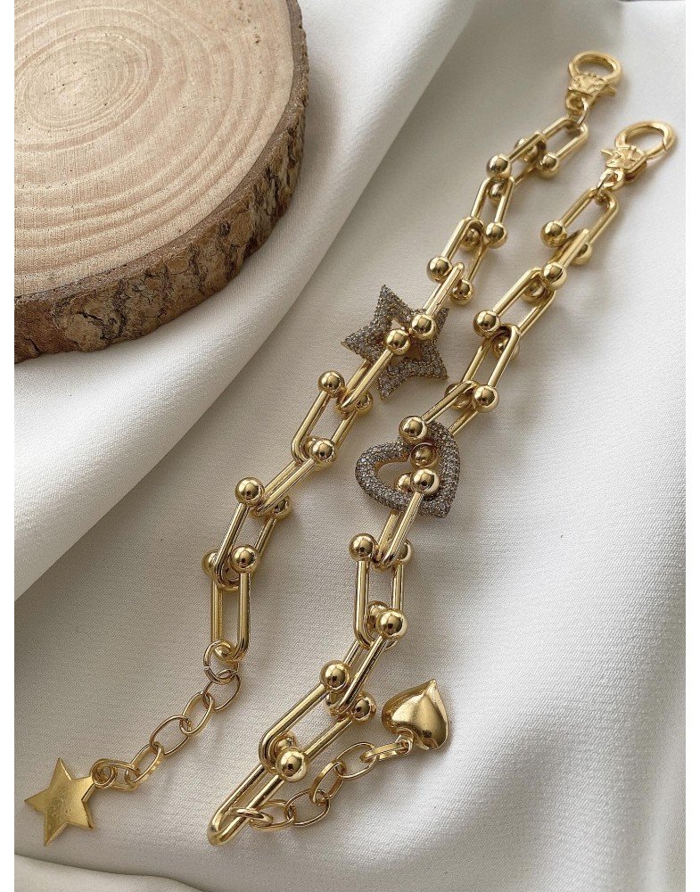 vip 14k tiffany zincir zirkon kalp ve yıldız charm çapa kilit özel seri bileklik